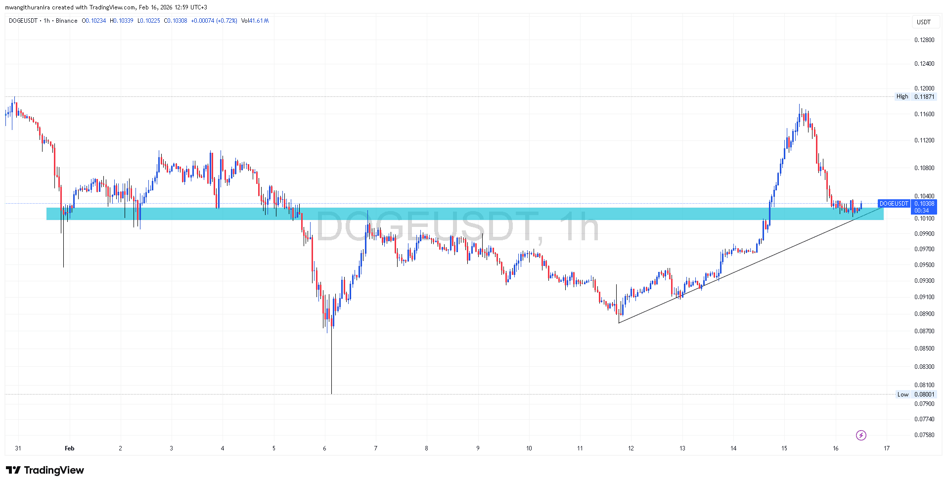 On the hourly chart of the $DOGE/USD pair, a horizontal support is in play, and a bullish trendline is forming with support near $0.10. Market data shows buyers stepping in around this zone. The question now centers on whether this level can continue to absorb selling pressure.
