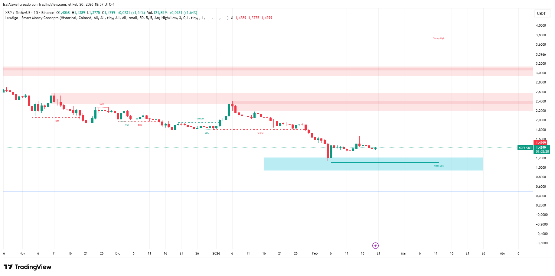 The market awaits two immediate catalysts that will define the direction in the coming days. The release of the PCE index in the United States, scheduled for today, February 20, will act as an inflation thermometer and condition appetite for risk assets. A reading below expectations could push $XRP toward the $1.60 resistance. Data above forecasts would increase the probability of declines toward $1.35 or lower levels.