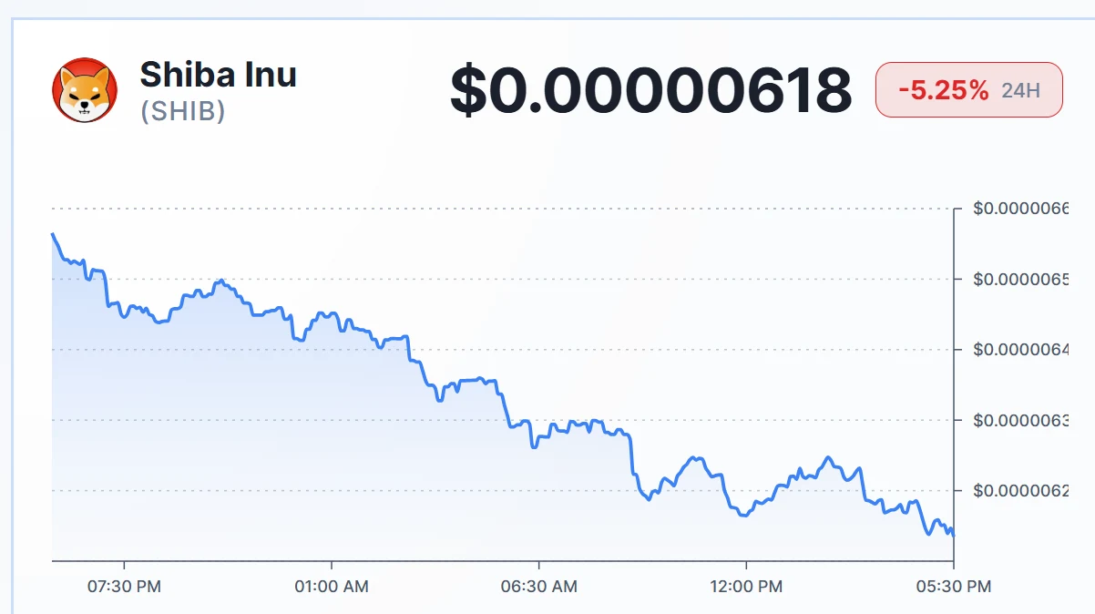 As of the writing, Shiba Inu was trading at $0.00000618, down by 5.25% in the past 24 hours.