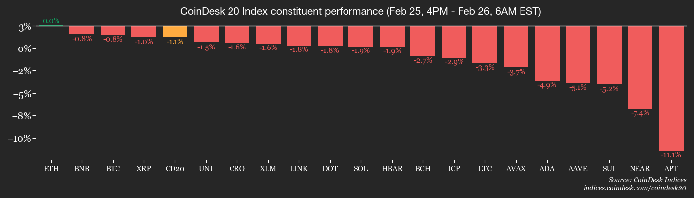 - CoinDesk 20 is down 1.27% at 2,011.66 (24hrs: +5.83%)