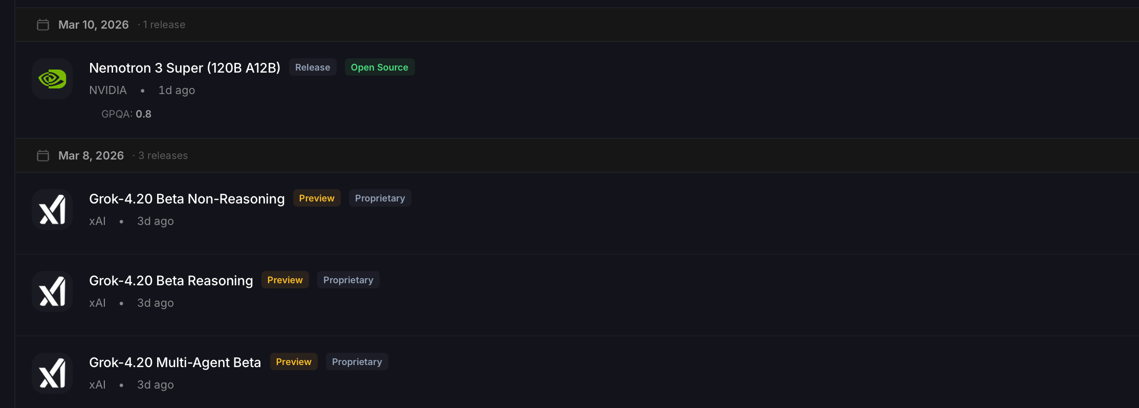 The flood did not slow as March began. Reinforcements quickly followed, including GPT-5.4, Grok-4.20’s multi-agent beta expansion, and Nemotron 3 Super, signaling that the rapid cadence is becoming the industry’s new normal rather than a temporary spike.