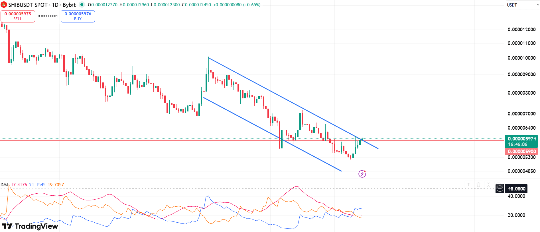 Shiba Inu Breaches Resistance Trendline and Falling Channel