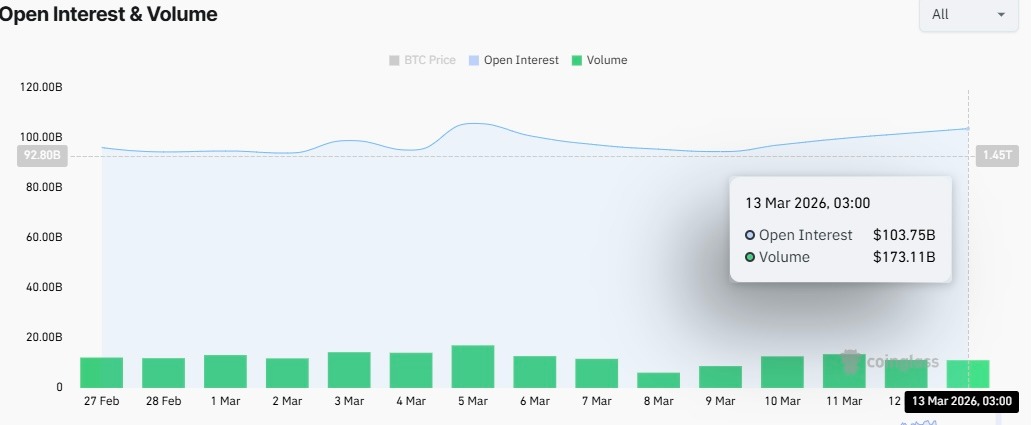 The total crypto market cap climbed from $2.469 trillion to hit $2.572 trillion at press time, thereby increasing by $103 billion on March 13.