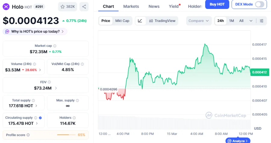 The latest CoinMarketCap data indicates that Holo is currently the 291st largest cryptocurrency in the larger digital asset market, showing its strong presence, supported by robust community engagement and investor appetite, positioning it as a major candidate for continued growth.