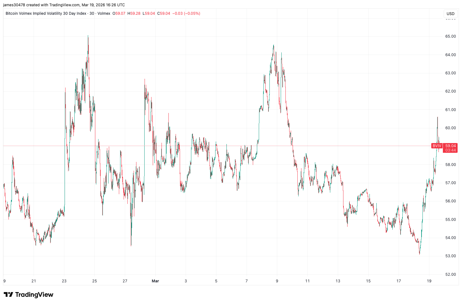 Cole Kennelly, CEO of Volmex Finance, said tomorrow’s event could drive volatility in crypto markets, noting that “quadruple witching could trigger a spike in cross-asset volatility as large derivatives positions expire. This may already be showing up in crypto, with the Bitcoin Volmex Implied Volatility (BVIV) Index trending higher into the event.”