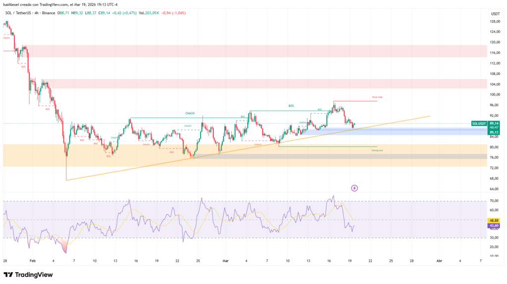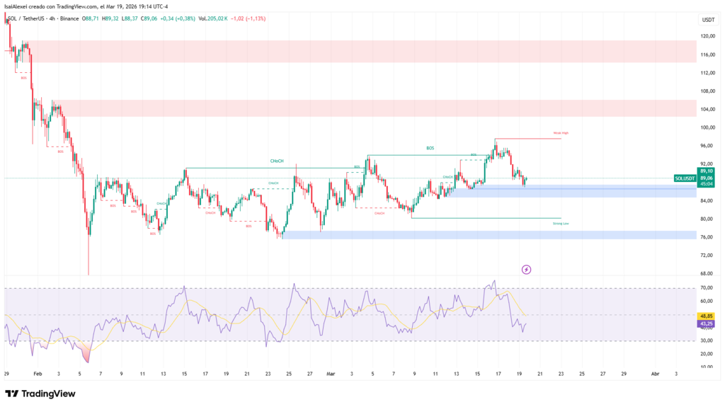 Solana trades in technically delicate territory where immediate support at $92-94 will determine whether the network consolidates its recovery or reverts to the bearish trend of prior months. $SOL fluctuated between $83 and $97 during March 2026, reflecting market indecision regarding the durability of the bounce from $78 lows. As March progresses, the price has pulled back again from the resistance zone $95-100, reopening questions about the solidity of the upside move and the token’s ability to sustain gains.