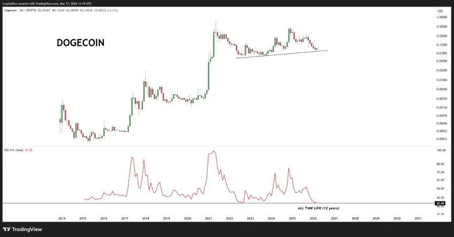 Dogecoin $0.10 Hits 12-Year Low RSI, Signaling Potential Rebound