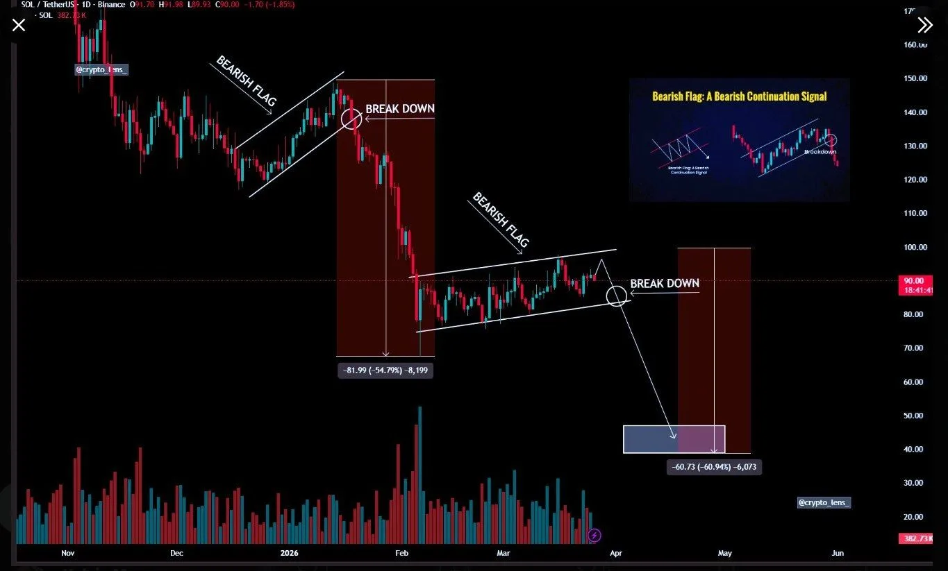 Bearish Flag Pattern Shapes $SOL Price Prediction