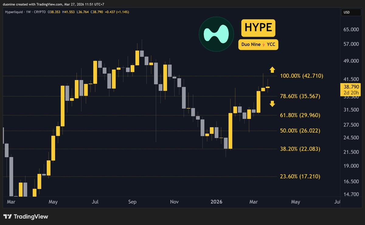 $HYPE is among the few altcoins that have a bullish price action, but closed this week in red with a 2% loss. Despite this, the price remains well above the key support at $36.