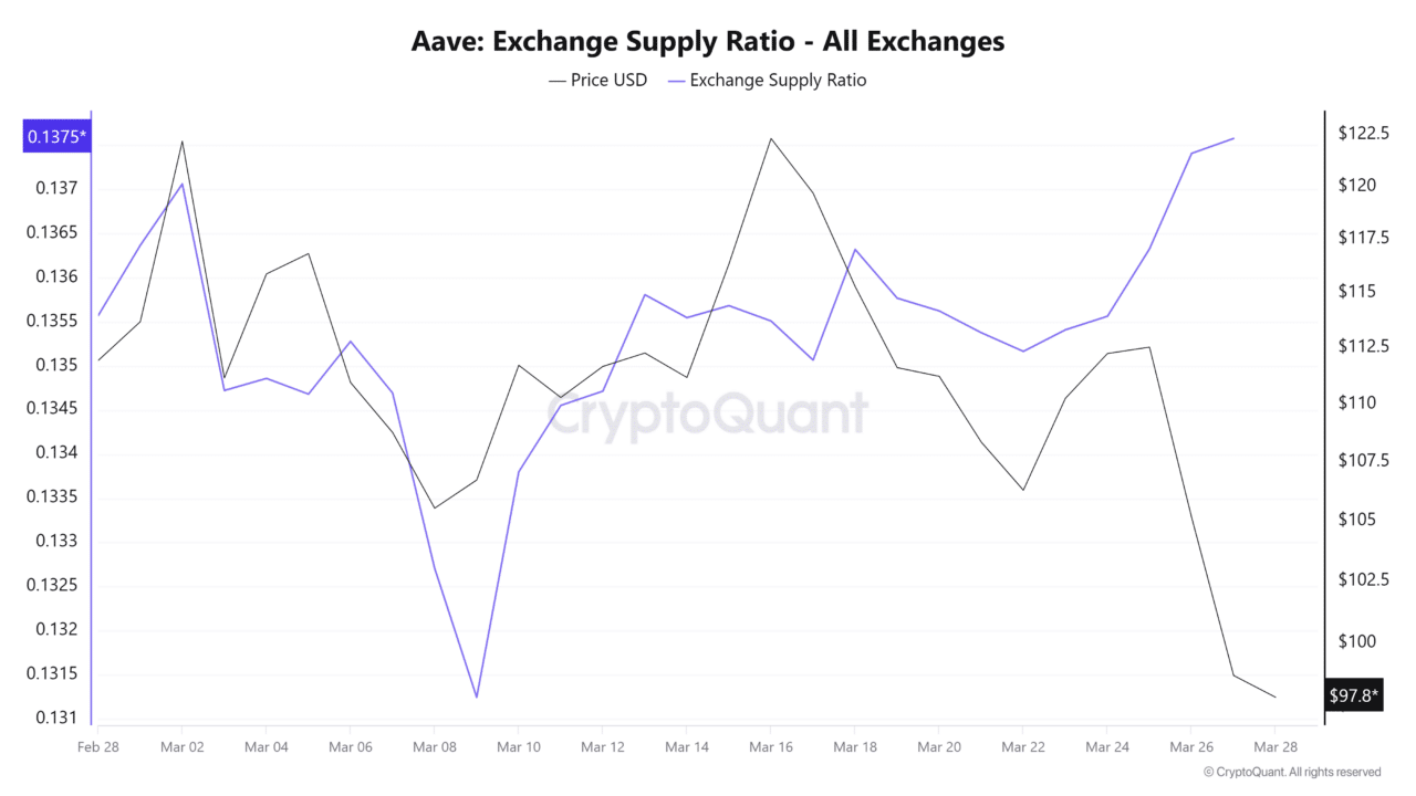Furthermore, exchange activities echoed this seller dominance. According to CryptoQuant data, 79k $AAVE tokens flowed into exchanges, compared to 74k flowing out.