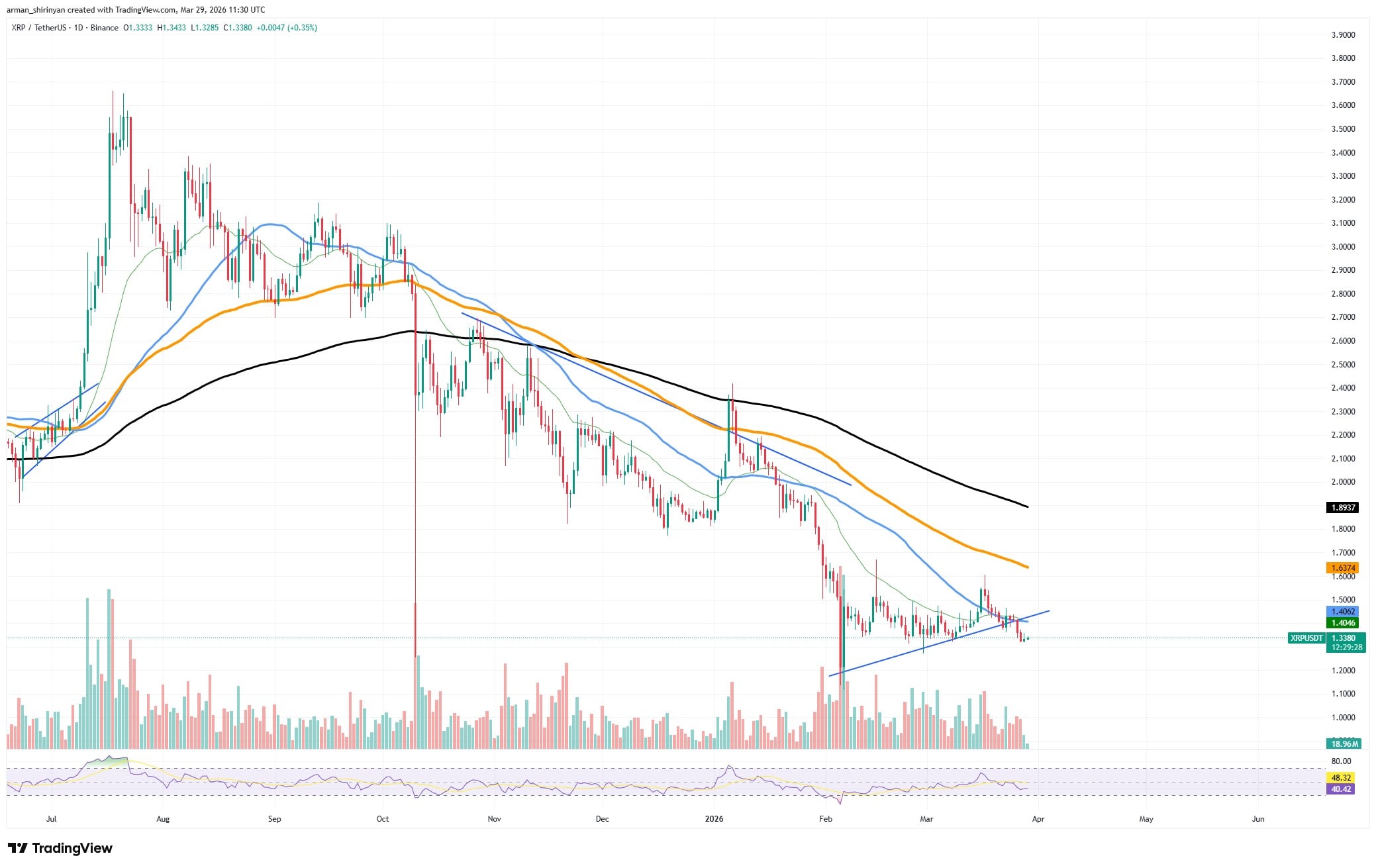 Losing the $1.30 region would likely trigger a cascade of sell orders, opening the path toward the $1.20 zone and potentially lower levels that have not been tested in this cycle. At that point, market perception shifts. Instead of consolidation, $XRP would be viewed as continuing its macro downtrend with no immediate support nearby.