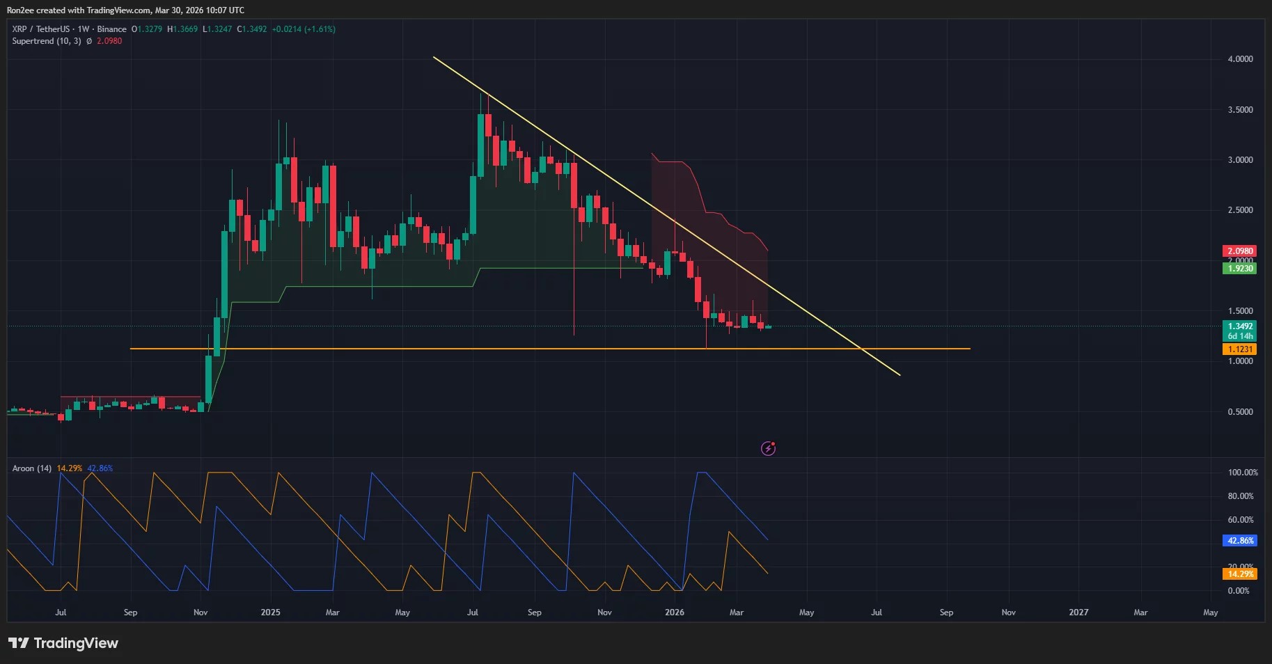 According to data from crypto.news, $XRP ($XRP) price has fallen 15.6% from its monthly high of $1.60 reached on March 17 to $1.35 at press time. Zooming out the charts, the losses mount up to over 40% from its year-to-date high of $2.39.