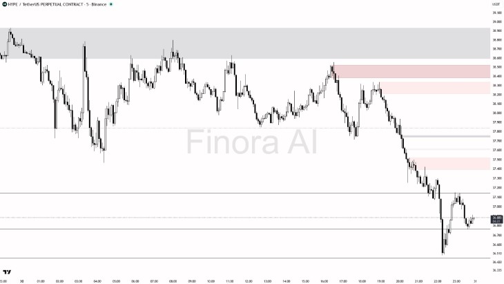 At present, Hyperliquid ($HYPE) price has dropped by over 3%, forcing its price to drop from $38.77 to $37.04 with a market capitalization of $9.49 billion, according to CoinMarketCap.