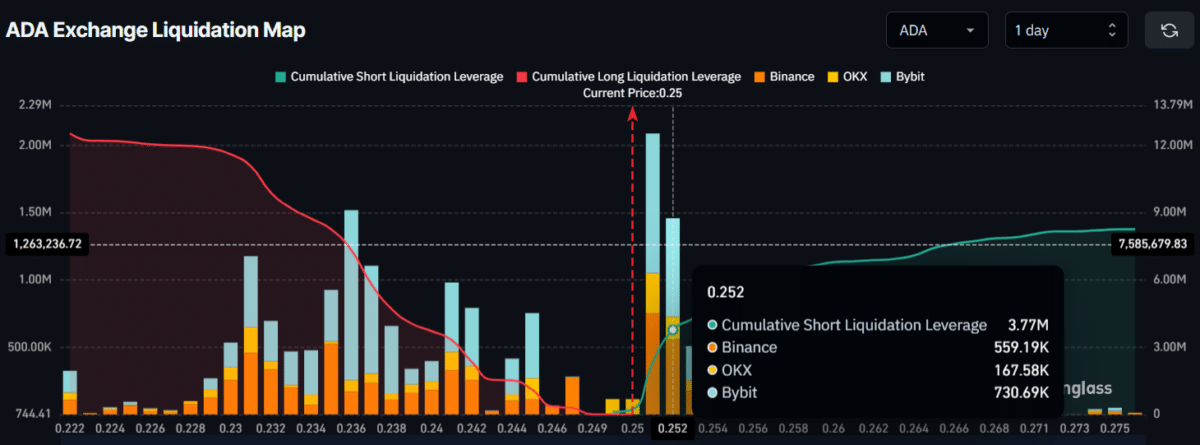 Based on this data, the next major resistance appears near $0.27. If the $ADA crosses the $0.252 level, it could see a quick uptick.