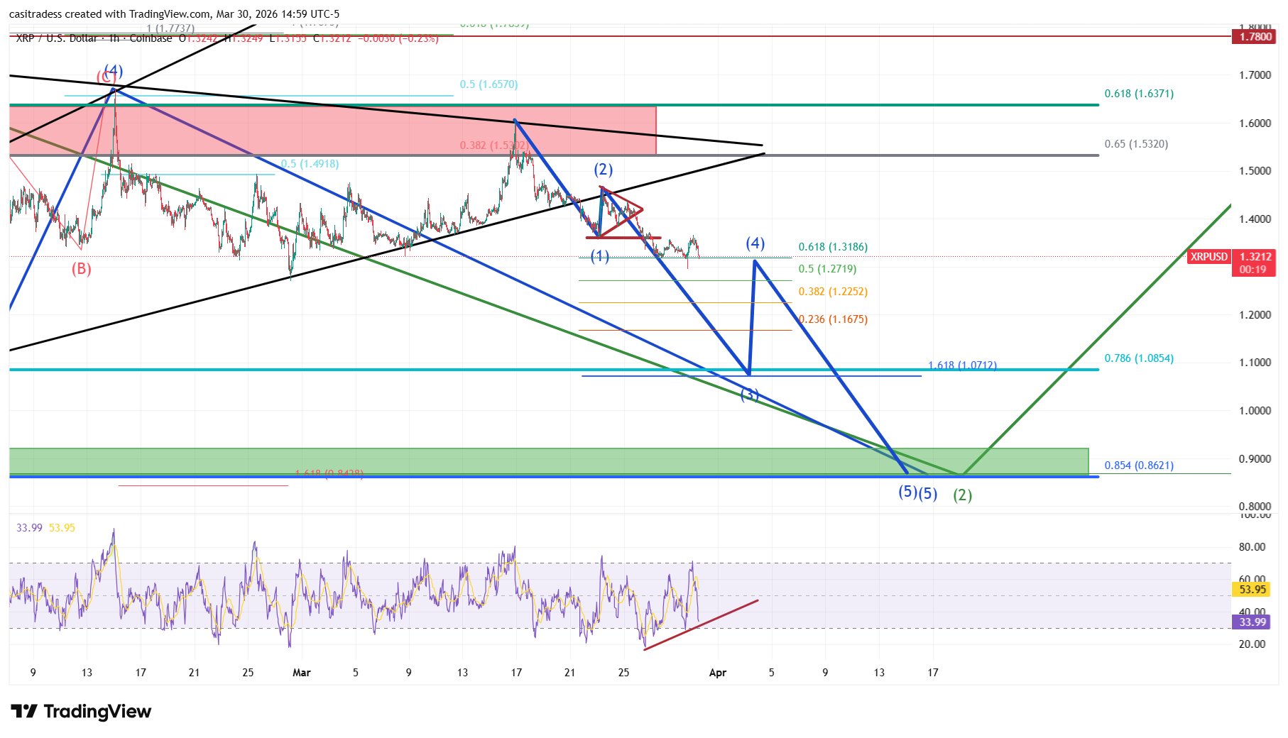 - A Wave 4 rebound toward $1.22-$1.31 could then ensue, before a final Wave 5 drop to $0.8621, marking the projected cycle bottom.