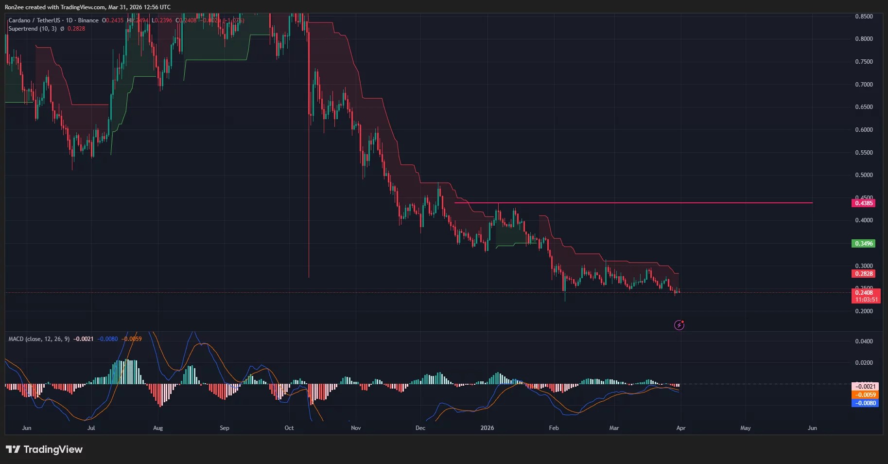 On the contrary, a sharp rebound above $0.28, the resistance level that aligns with the Supertrend threshold, could spark a rally to its January 6 high of $0.43.