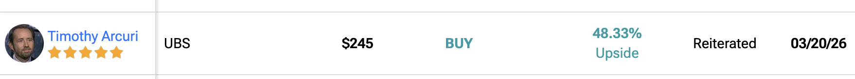 UBS analyst Timothy Arcuri reiterated a Buy rating on Nvidia shares with a $245 price target on March 20, implying 48% upside. That call, issued five days before the AI memory rout began, prices in continued demand driven by Rubin GPU shipments and treats the memory supply disruption as a short-term headwind rather than a structural shift.