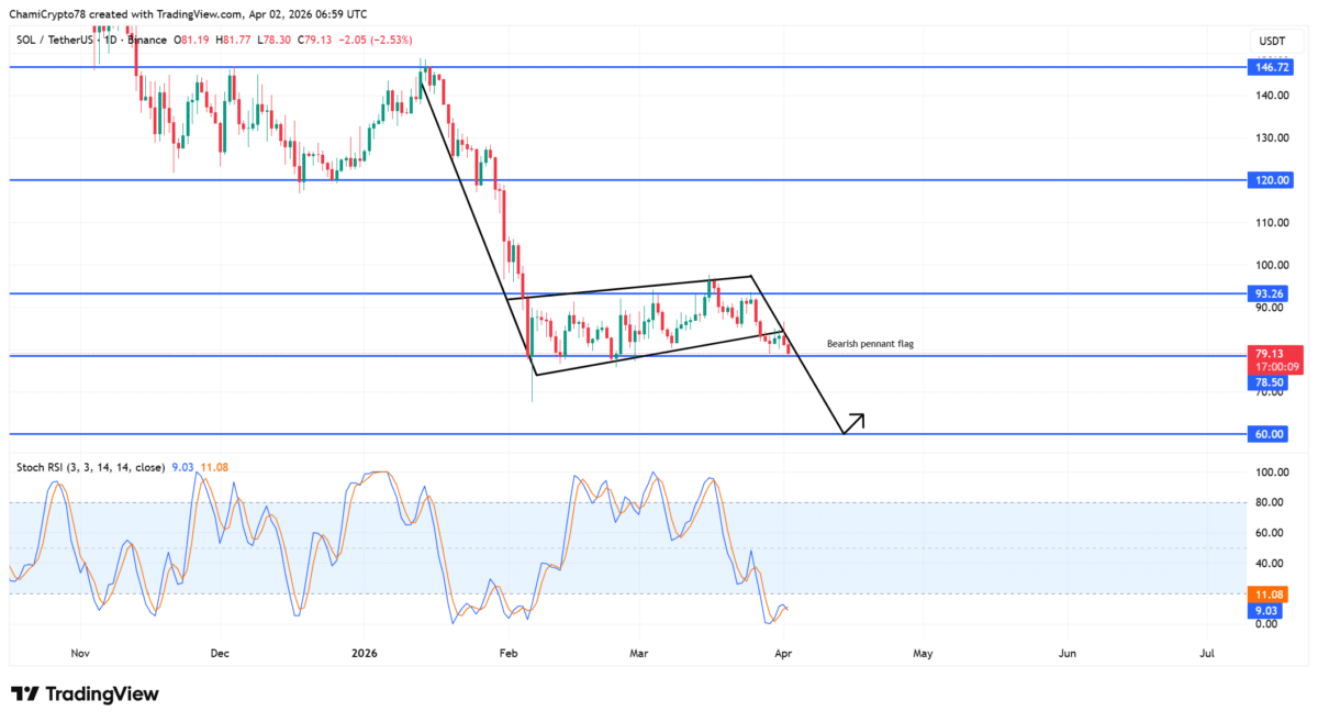 Following this pressure, $SOL broke below its bearish pennant near $80, confirming continuation from consolidation.