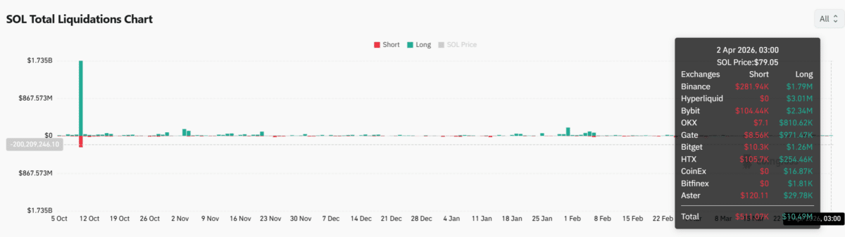 Over $10.49 million in long liquidations occurred, compared to $511,070 in shorts. This gap showed bullish traders were repeatedly forced out.
