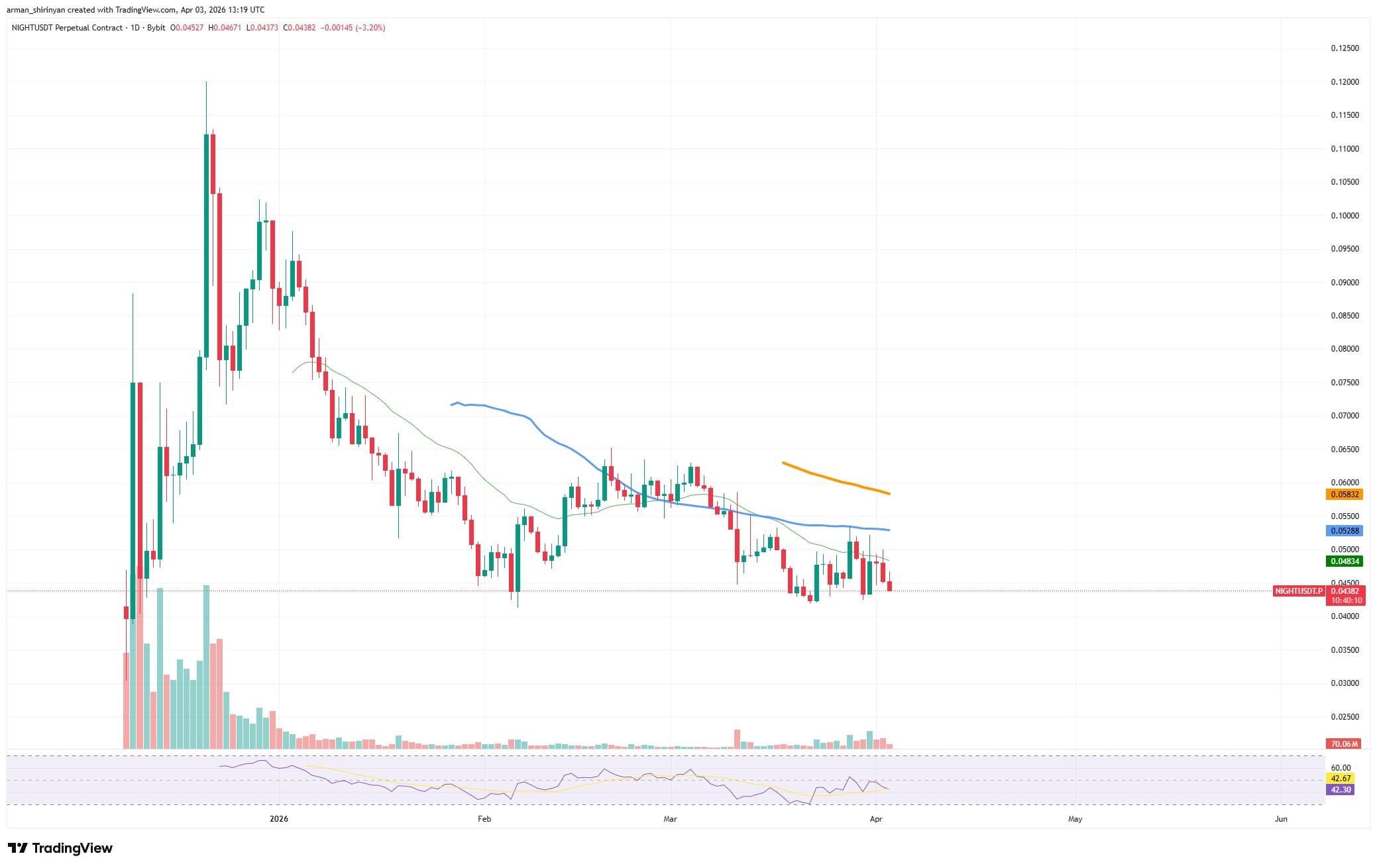 Nevertheless, the overall situation is still negative. All of the major moving averages, which are still trending lower, are still below $NIGHT. There is no obvious indication of aggressive accumulation, and the volume is still comparatively low, in comparison to previous stages.
