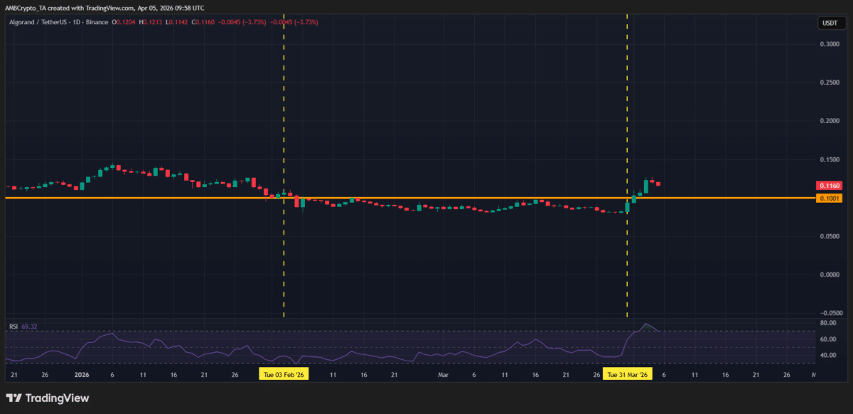 According to AMBCrypto, this cooldown makes sense. $ALGO is bumping into resistance around $0.12, a level that held back the price back in mid-January.