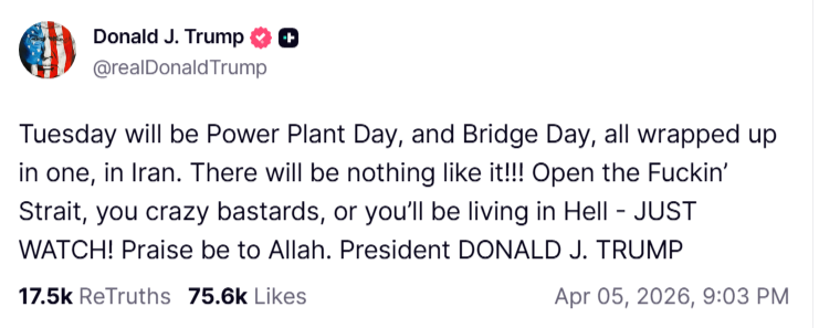 In a social media post, Trump declared Tuesday would be “Power Plant Day, and Bridge Day” and demanded Iran “open the f—ing Strait,” warning Tehran would “be living in Hell.” The unprecedented language signals Washington’s growing frustration with stalled diplomacy over the critical waterway.