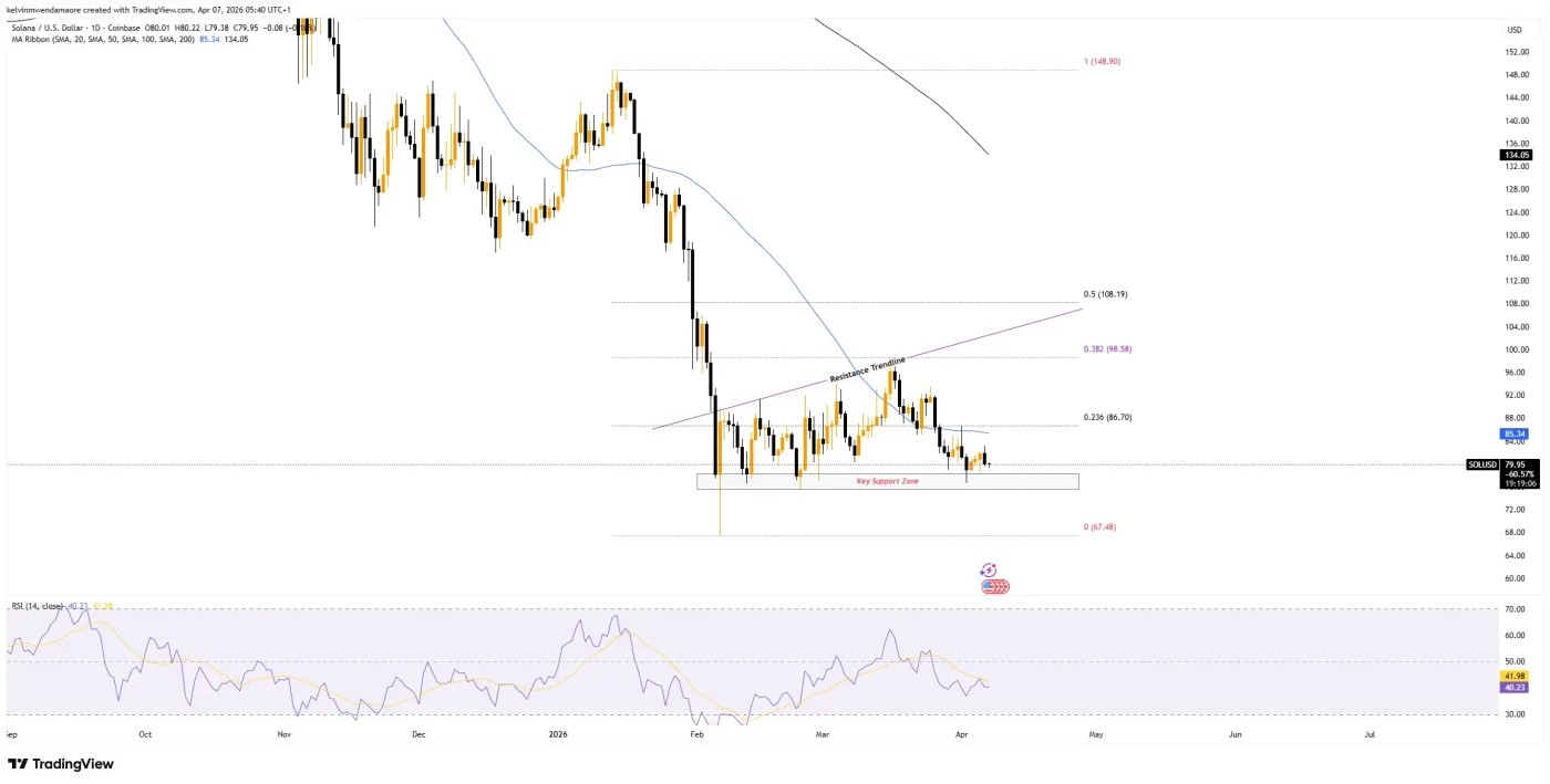For now, however, Solana remained under pressure. A daily close below $78 could open the door to further selling toward $75, while a move back above $82 would offer the first sign of stabilization.