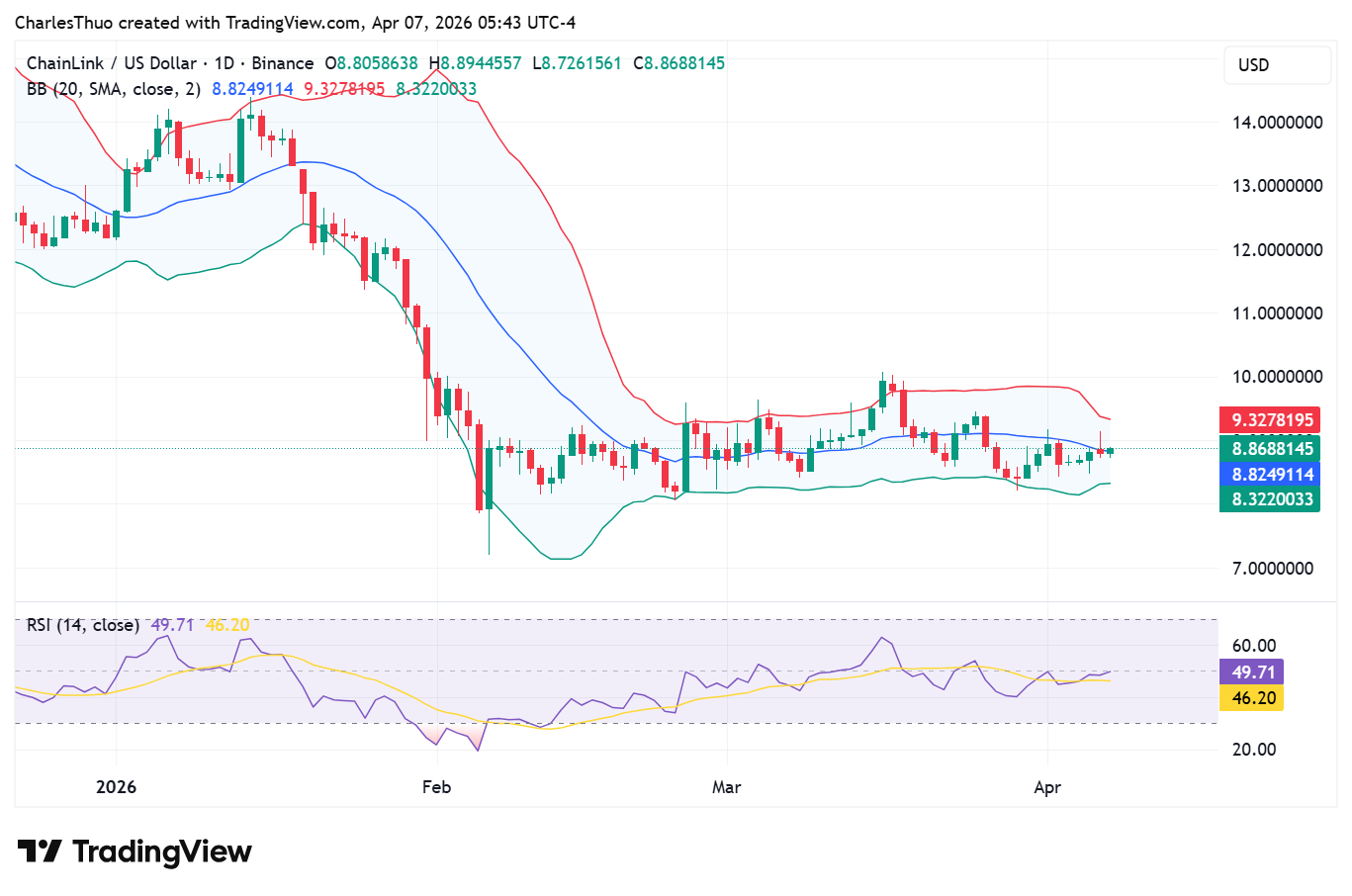 As long as $LINK maintains its recent low near $8.47, the market setup suggests that the pullback is a natural part of price consolidation rather than the start of a larger decline.