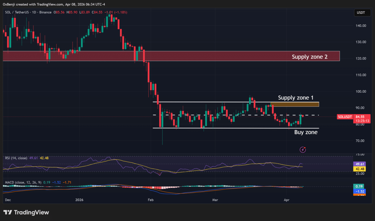 Meanwhile, $SOL’s price surged about 7%, rising from $78 to $87 after the Iran ceasefire offered broader market relief. If the bidding extends into the weekend, the mid-range of $85 could be reclaimed, offering a pathway to the range high of $90-$93 or a 9% potential gain.