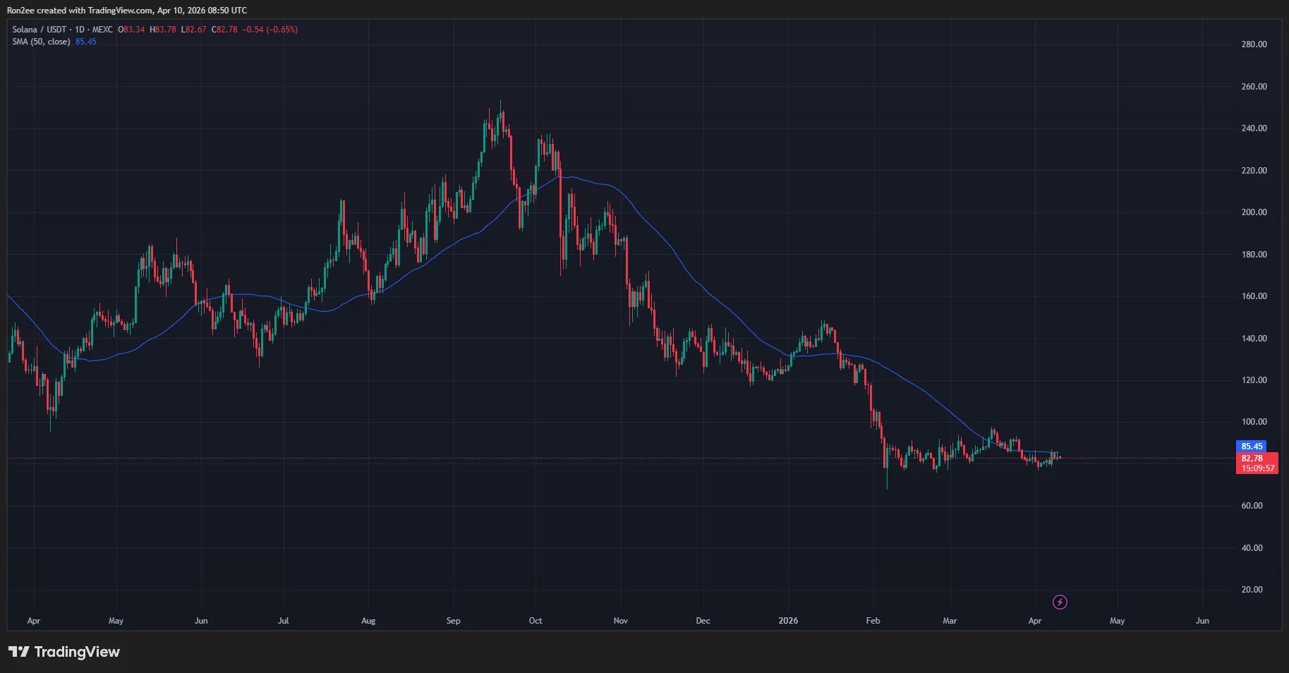 The daily chart shows that Solana price has been trading within the $76 to $92 range since February this year. The token recently moved into the lower end of this range in the past two weeks.