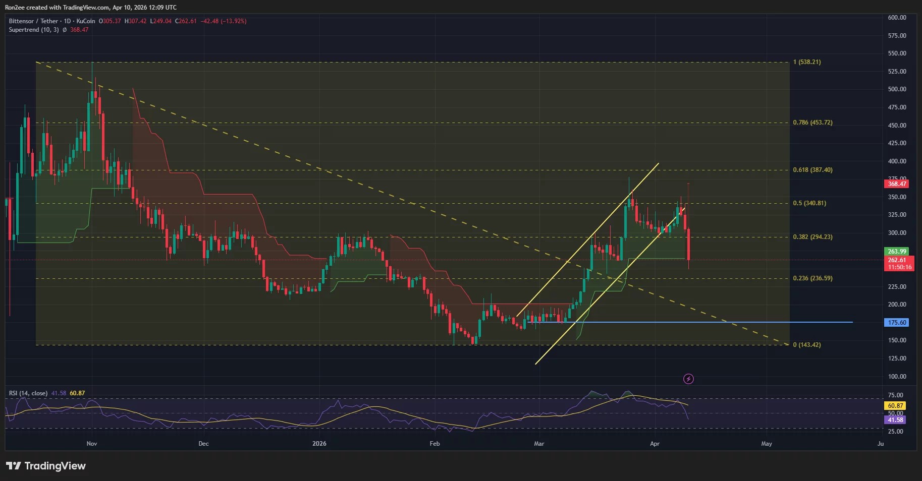 According to data from crypto.news, Bittensor ($TAO) price fell 25.6% from $340 to an intraday low of $253 on Friday, erasing close to $900 million from its market capitalization. Trading at $266.7, the token has dropped to levels not seen since mid March.