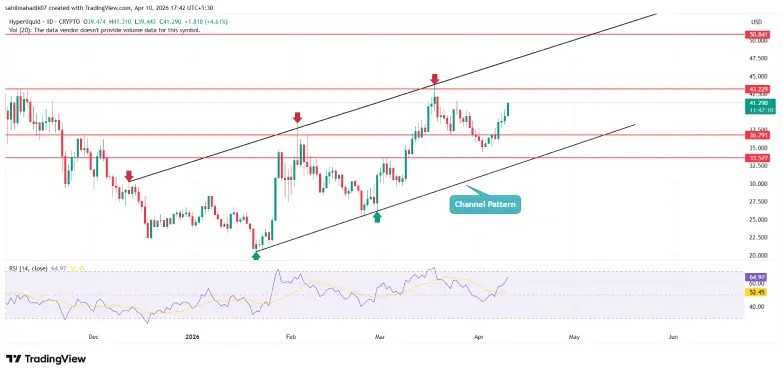 Since late January 2026, the coin has been actively resonating between the parallel trendlines as they offer dynamic resistance and support for the price. The potential retest to the overhead resistance would mark a pivot moment for Hyperliquid price as a potential breakout from this resistance would further accelerate the momentum in the asset for a prolonged recovery towards $60.