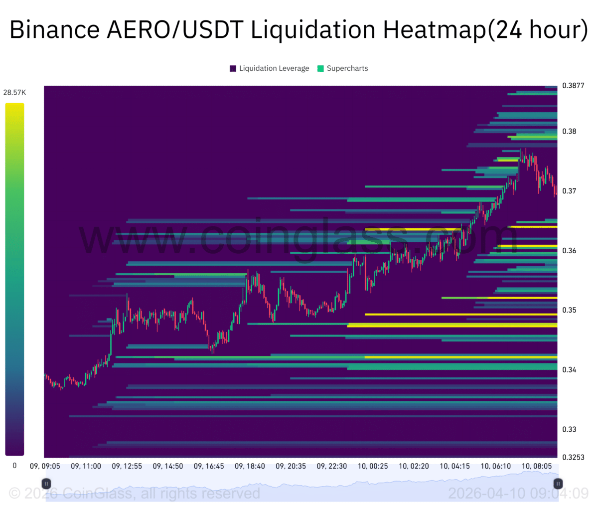 - $AERO is pushing resistance with rising participation, but liquidity below still attracts downside movement.