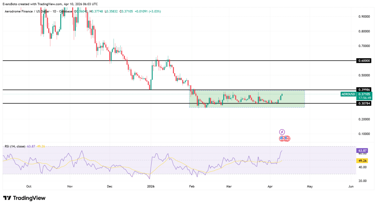 Aerodrome [$AERO] climbed 10.74% to $0.3725, while volume expanded by 36.65%, showing strong trading activity during the move.