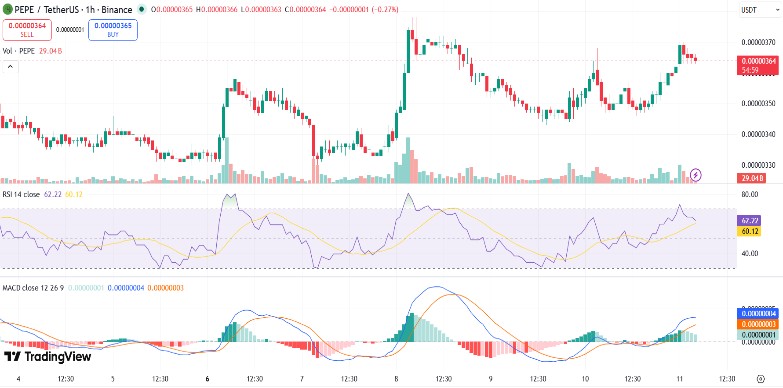 According to TradingView, technical indicators are suggesting a neutral zone for the memecoin. The 14-day Relative Strength Index is currently sitting at around 64, which means that the memecoin is neither overbought nor oversold. Also, there is room to surge higher without immediate exhaustion.