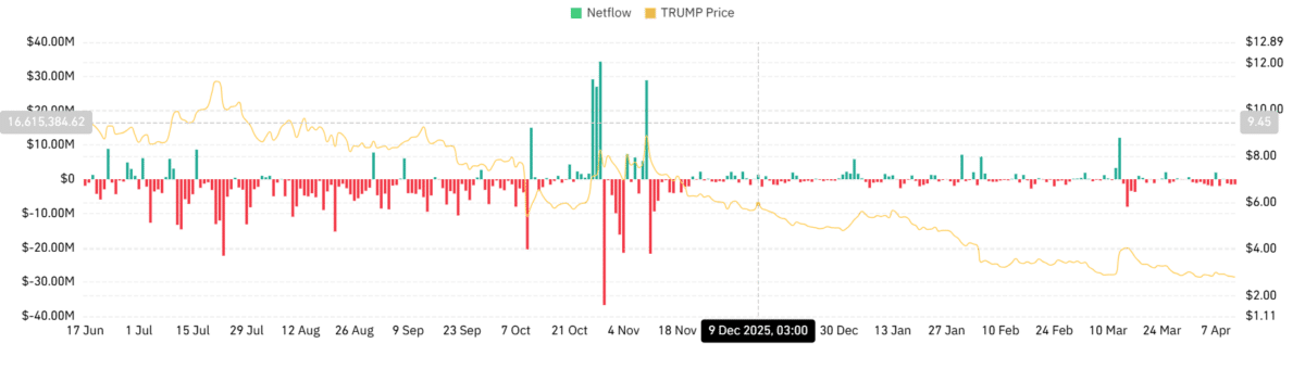 In fact, $TRUMP’s derivatives market recorded sustained outflows through 2026. Over the past seven days, $547.9 million exited futures, against $504 million in inflows.