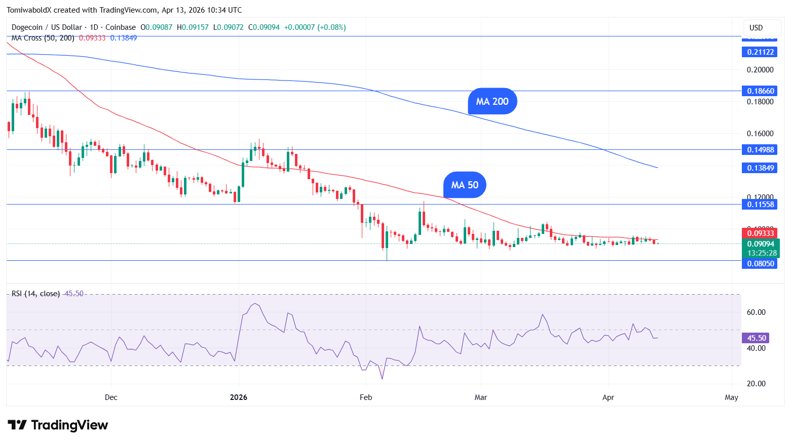 According to analysts, Dogecoin fractals seem to be telling a clear story. Alicharts indicated that Dogecoin is seeing a typical "coiling" phase that historically happens before the next parabolic move. He believes that smart money might begin to accumulate between $0.060 and $0.090. Key resistance levels for Dogecoin in the short term are $0.093 and $0.104, which will target $0.14 if broken.