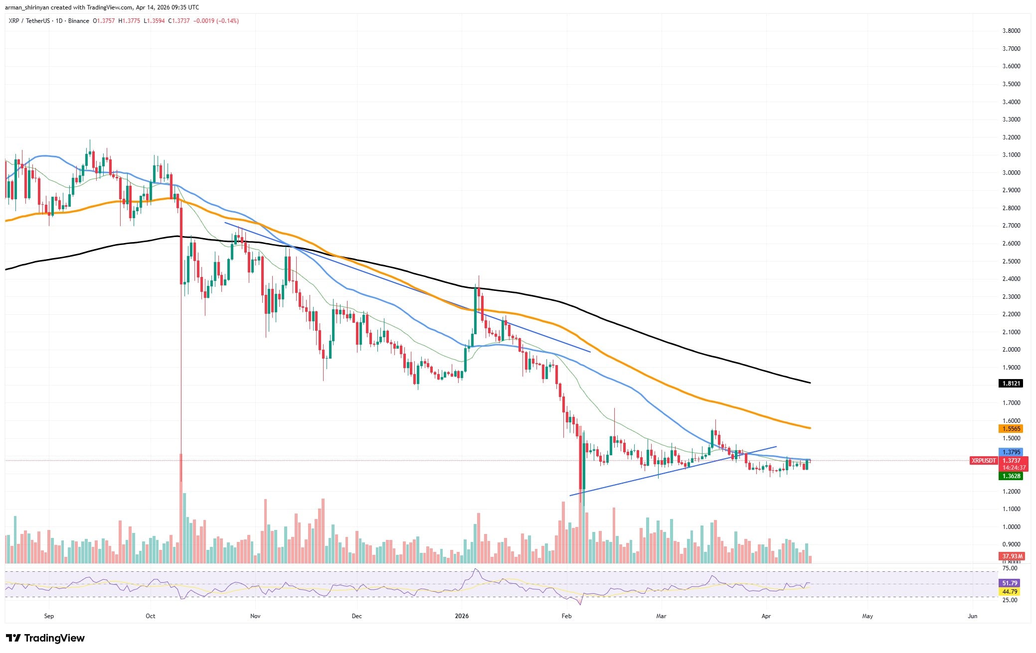 With no confirmed trend reversal, $XRP is still trading in a weak structure between $1.35 and $1.40, below significant resistance levels. Due to transaction volume not being equal to demand accumulation, the market has not yet priced in the activity spike.