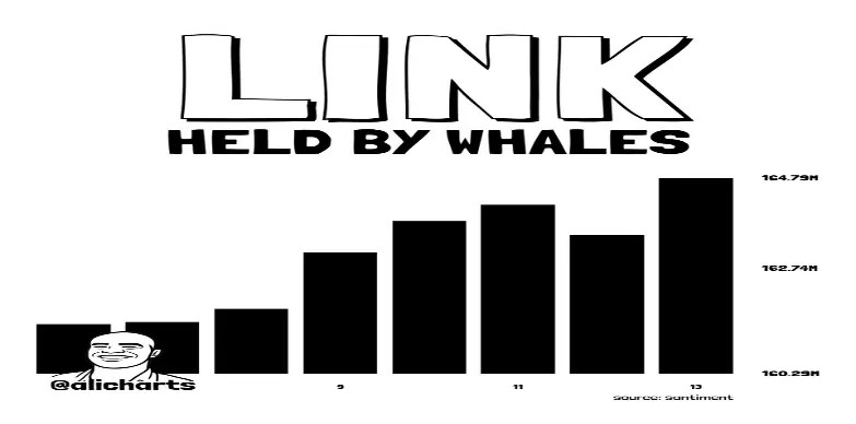 While the retail participants remain cautious, the large investors are gradually building their position in Chainlink. In a recent tweet from market analyst Ali Maritenz highlights that whales accumulated 3.30 million $LINK over the past week.