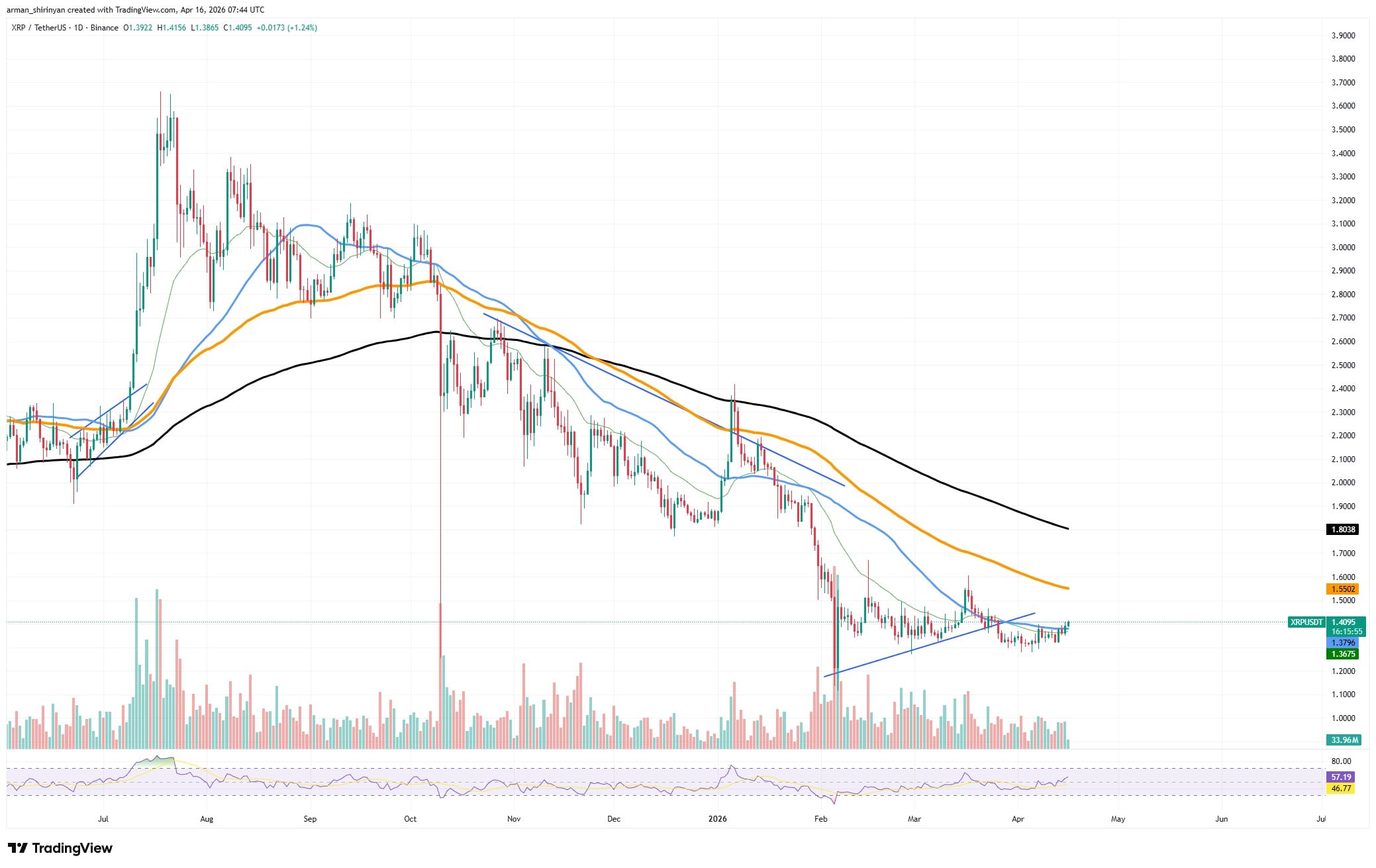 For the first time since March, $XRP has successfully broken above the $1.40 mark. Although it appears to be a significant change on the surface, the situation is more complicated when considering the broader context.