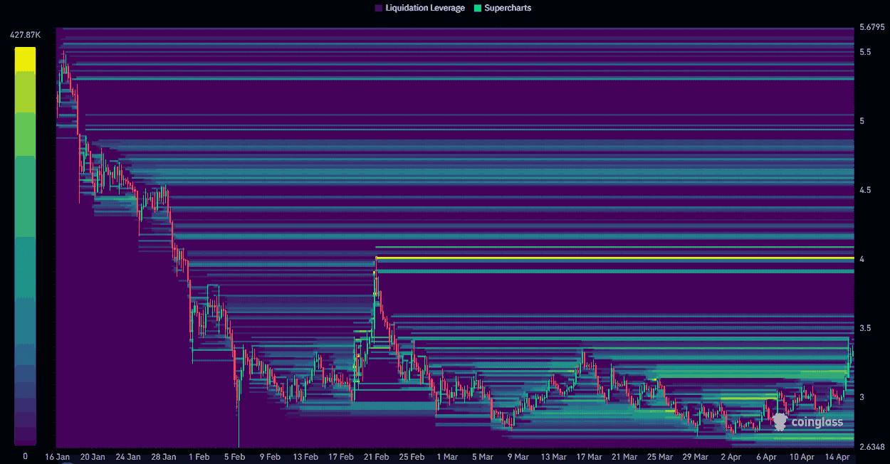 With momentum building, the next area of interest sits around $4.0. This level represents a clear liquidity zone and a psychological threshold. Markets tend to react strongly around such levels, either accelerating through them or pausing.