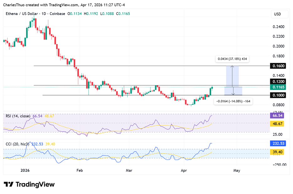 The next move for $ENA will likely depend on how the price behaves around $0.12.