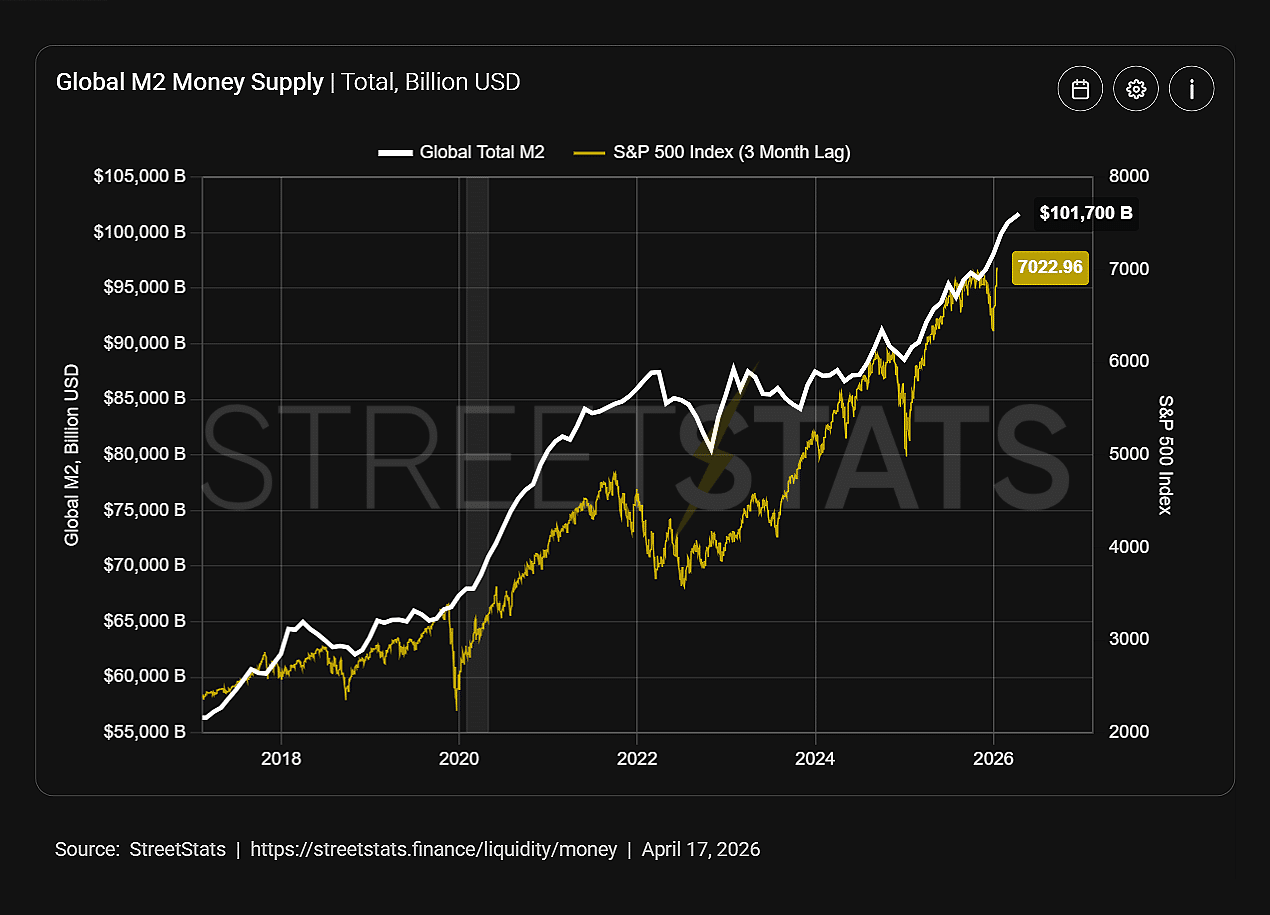 That said, the liquidity story doesn’t stop at the policy level. On the macro side, the global M2 money supply has hit another all-time high, signaling continued expansion in “system-wide” liquidity.