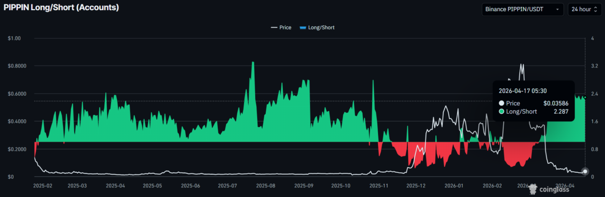 Derivatives data further strengthened PIPPIN’s bullish outlook. Data from CoinGlass showed that the Long/Short Ratio reached 2.2866, suggesting that traders were heavily skewed toward long positions, reflecting growing confidence in a potential upside move.
