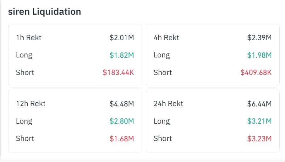 After $SIREN rallied and then dropped below $2, Futures market participants attempted to chase the rally. Others also tried to bet against the market.