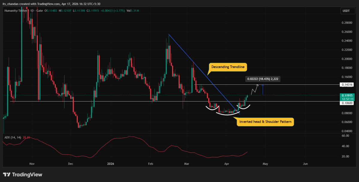 Based on the current price action, if H remains above the $0.106 neckline level, it could see an additional 18.50% gain and may reach the $0.1431 level in the coming days. However, this bullish thesis could be invalidated if the price falls below the $0.106 level.