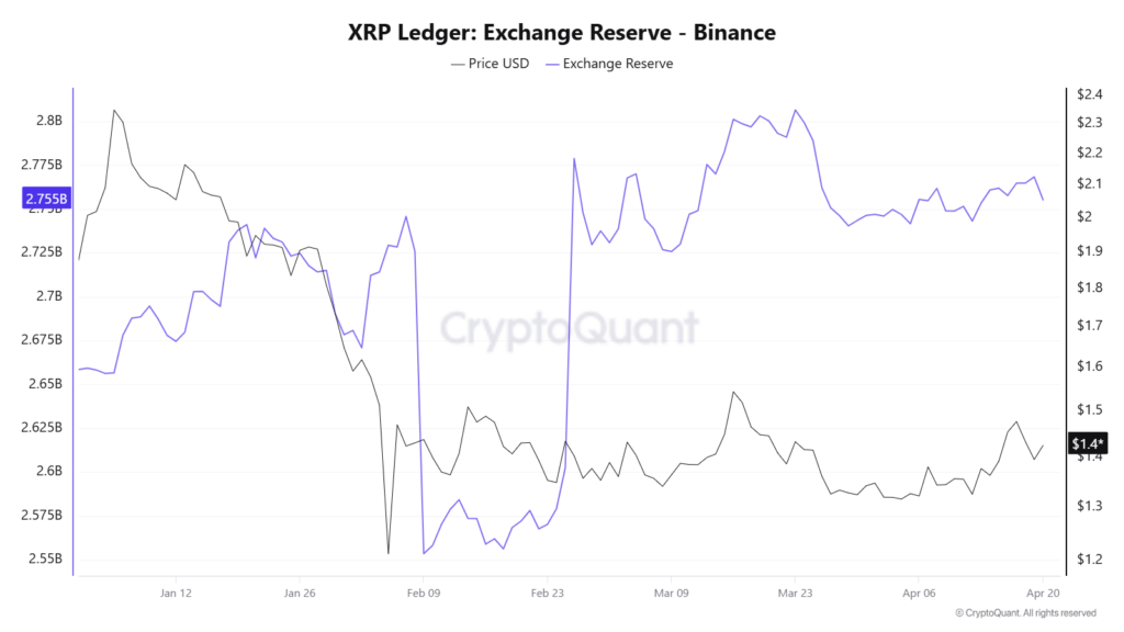 Year-to-date (YTD), the token’s reserves on Binance have gradually increased from 2.658 billion tokens to 2.755 billion as of April 20, according to analytics from CryptoQuant. In the past three months, Binance’s supply of the token surged from 2.553 billion, signaling rising selling pressure.