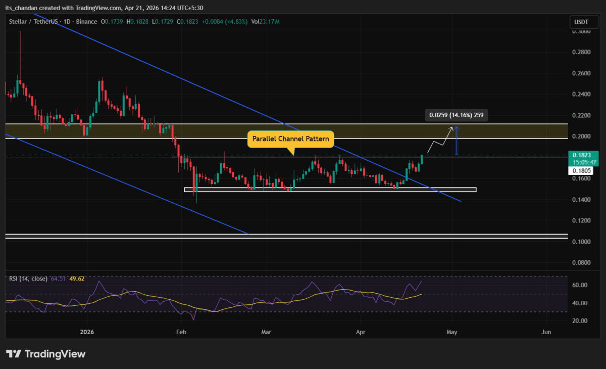 Not only that, but the asset has also broken out of a parallel channel pattern, where the price had been hovering between the $0.148 and $0.1805 levels since February 2026.