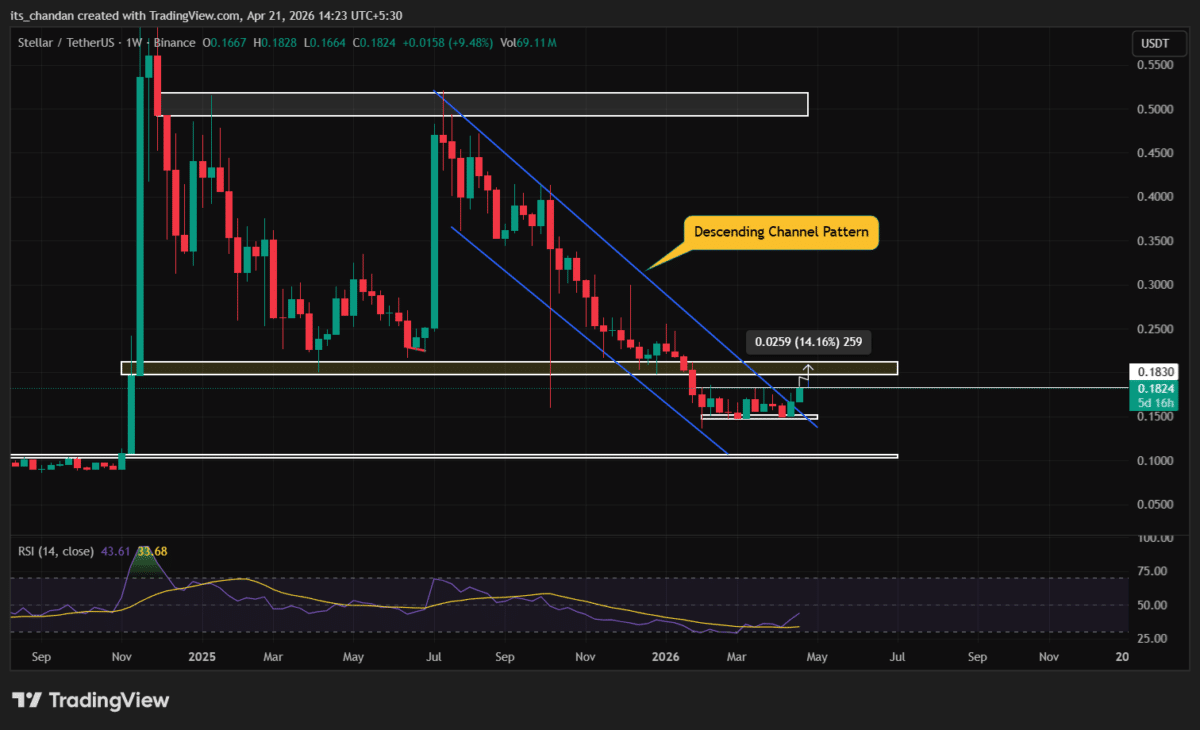 However, if the $XLM price fails to close a daily or weekly candle above the $0.1805 level, it could fall back into the channel pattern and continue its sideways movement.