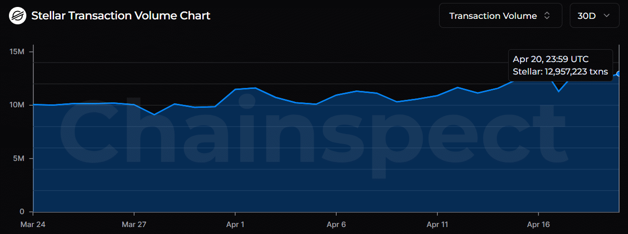In addition to the price action and expert predictions, blockchain analytics platform Chainspect showed that Stellar processed over 12,957,223 transactions on the 20th of April, marking an increase of 2,891,644 from the 10,065,579 recorded on the 24th of March.